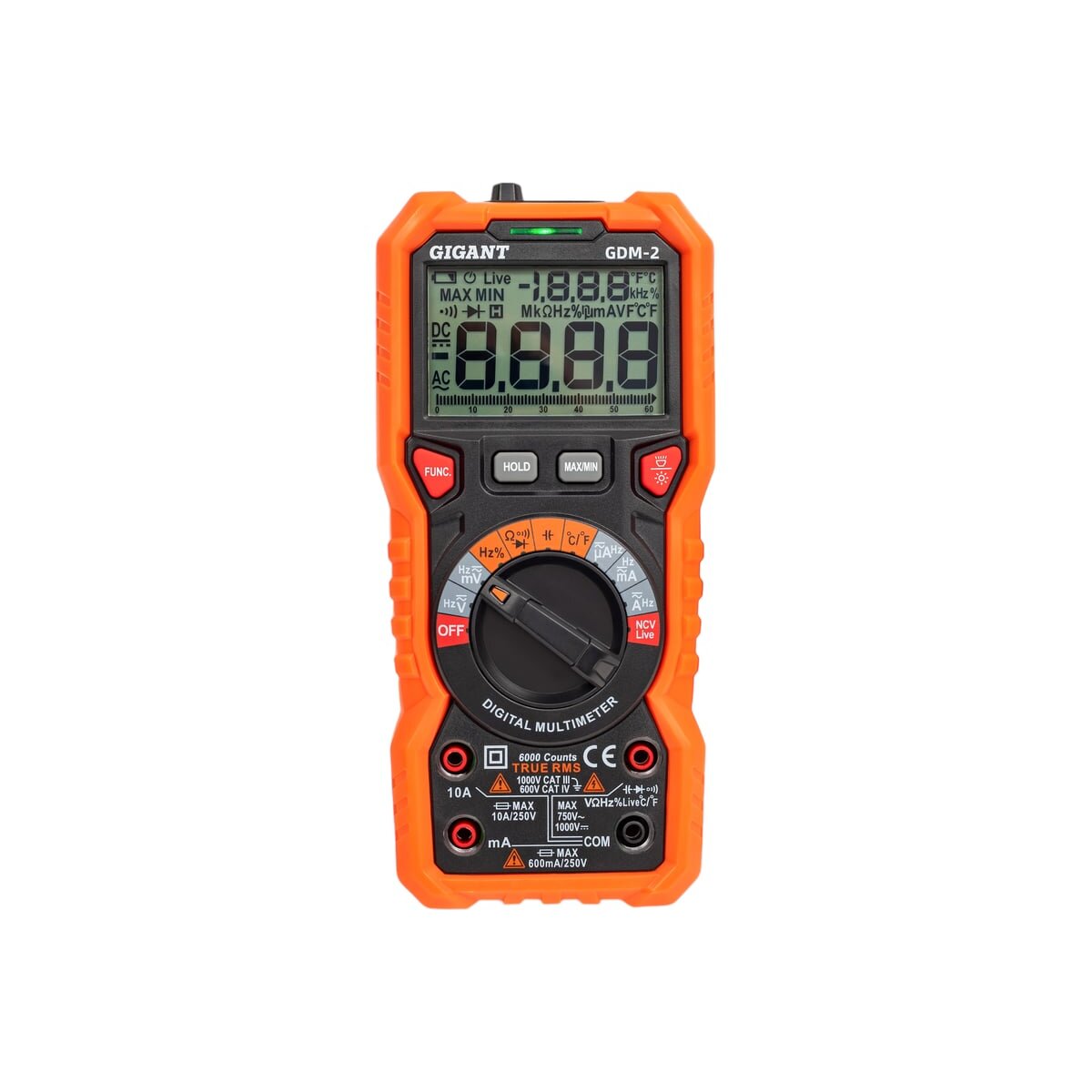 Цифровой мультиметр Gigant GDM-2 используется для измерения постоянного и переменного тока, постоянного и переменного напряжения, сопротивления, температуры и емкости.