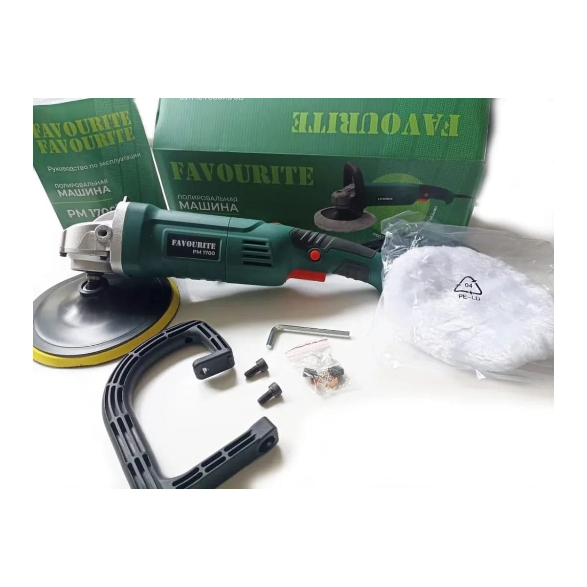Полировальная машина FAVOURITE 1700Вт, 180 мм, 600-3000 об/мин, М14 PM 1700 предназначена для полирования поверхностей лакокрасочными покрытиями, а также дерева, фанеры и т.п.
