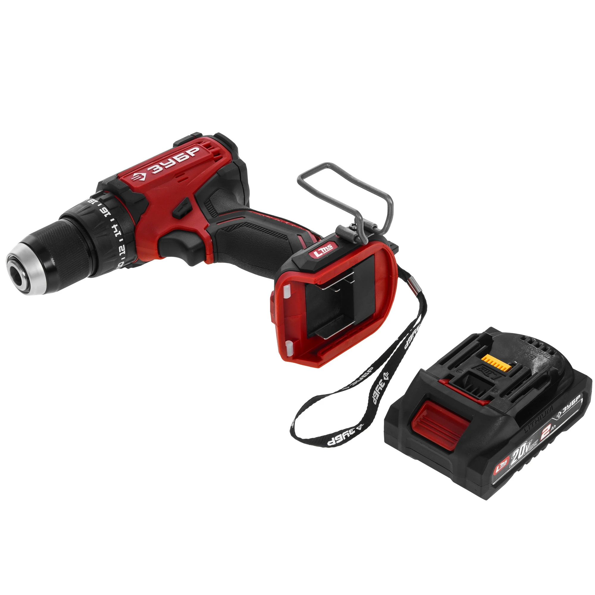 - Скоба для крепления на поясе, устанавливаемая с любой стороны инструмента