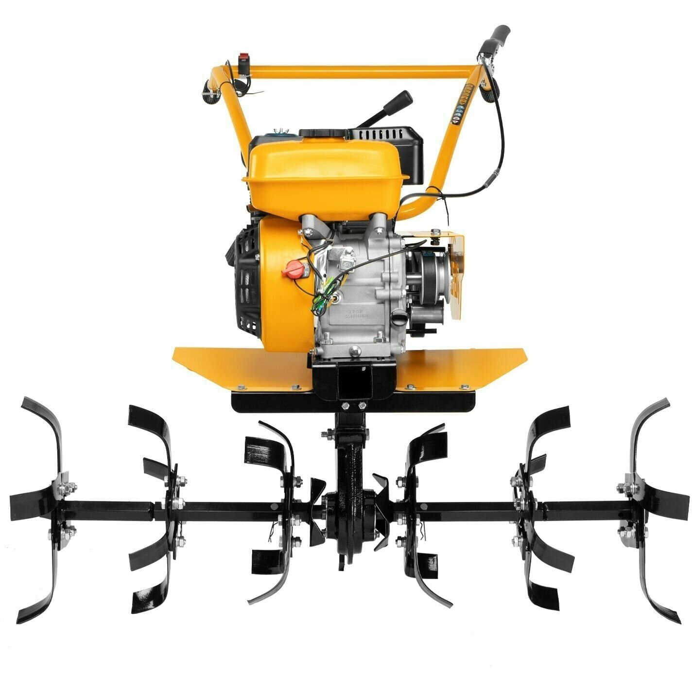 Эффективная работа — благодаря усиленному шестеренчато-цепному редуктору с чугунным корпусом мотоблок успешно справляется даже с плотным, глинистым грунтом.