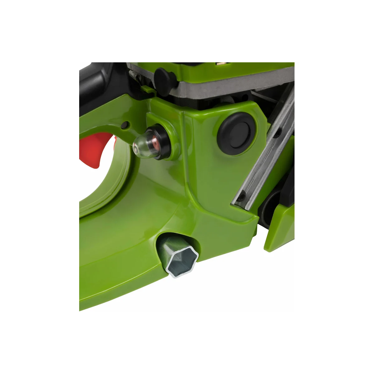 - Автоматическая система смазки цепи обеспечивает равномерную подачу масла для безопасной и эффективной работы.