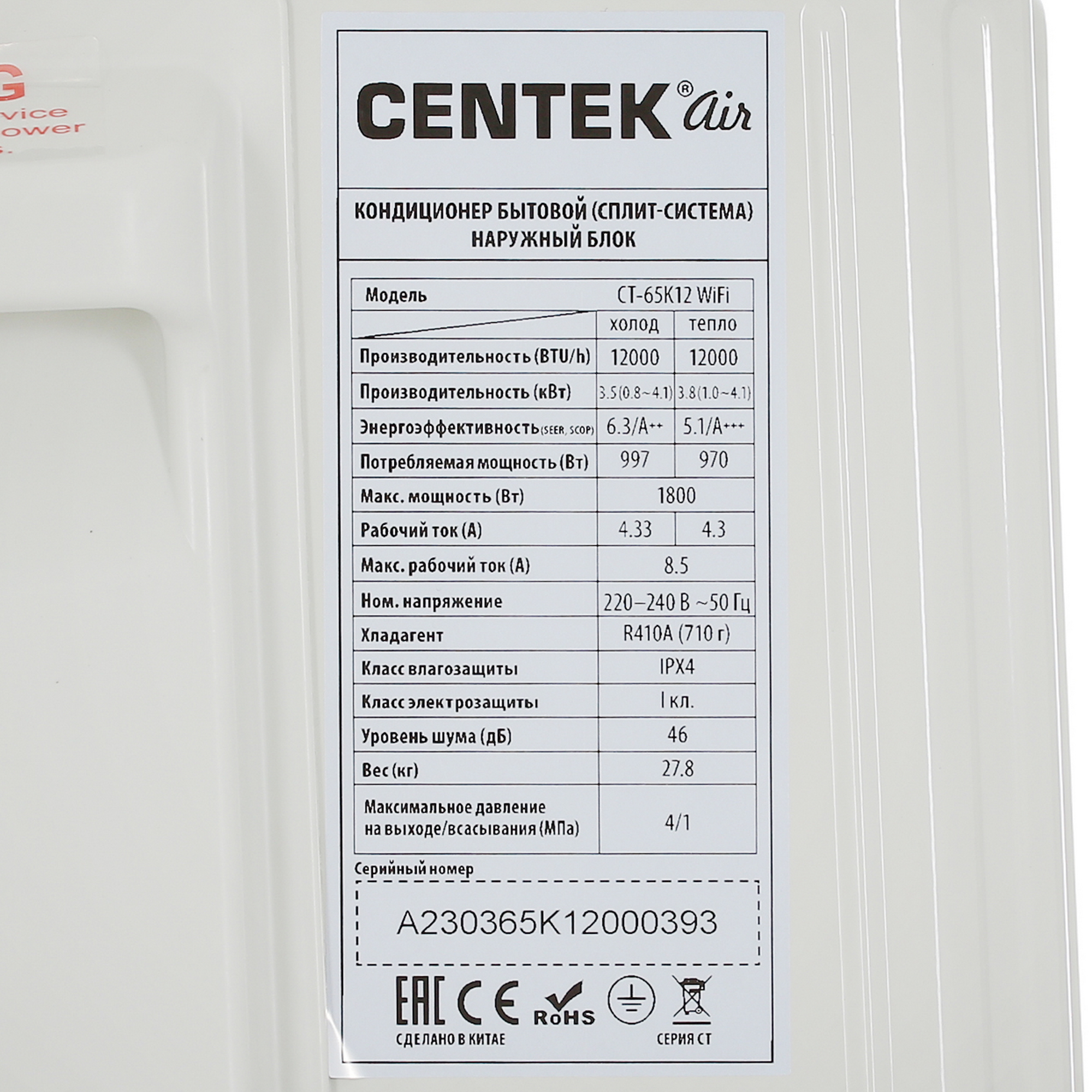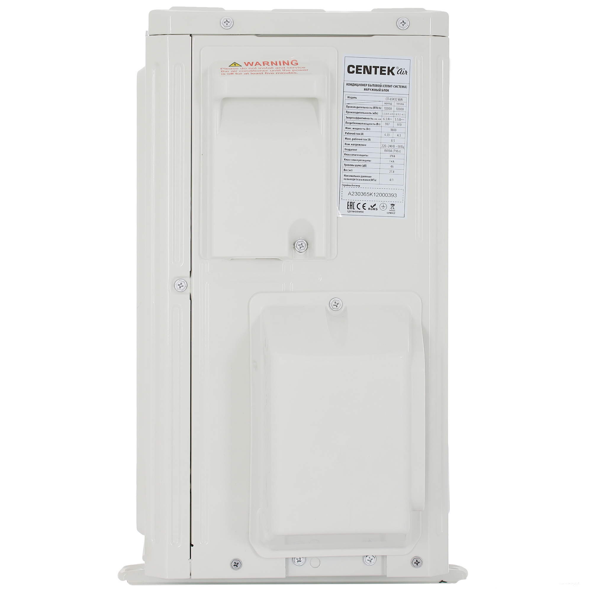 Сплит-система разработана с учетом работы в широком диапазоне внешних температур. В зимний период или в межсезонье устройство эффективно обогревает помещение при наружной температуре до минус 15 градусов, выступая полноценным источником тепла. Использование экологичного хладагента R 410A и высокая степень защиты корпуса IPX4 гарантируют долговечность оборудования и безопасность для окружающей среды. Массивный внешний блок весом 27.8 кг свидетельствует о надежности металлических компонентов и высоком качестве сборки, характерном для продукции бренда Centek.