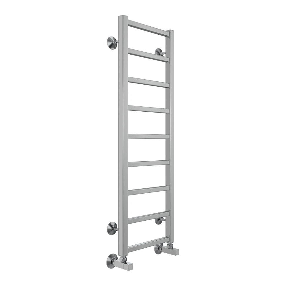 Модель водяного полотенцесушителя Terminus Контур относится к линейке в стиле хай-тек, тяготеющей к лаконичным формам и хромированным поверхностям, и отличается наличием дополнительной прогреваемой полки для хранения и сушки полотенец.