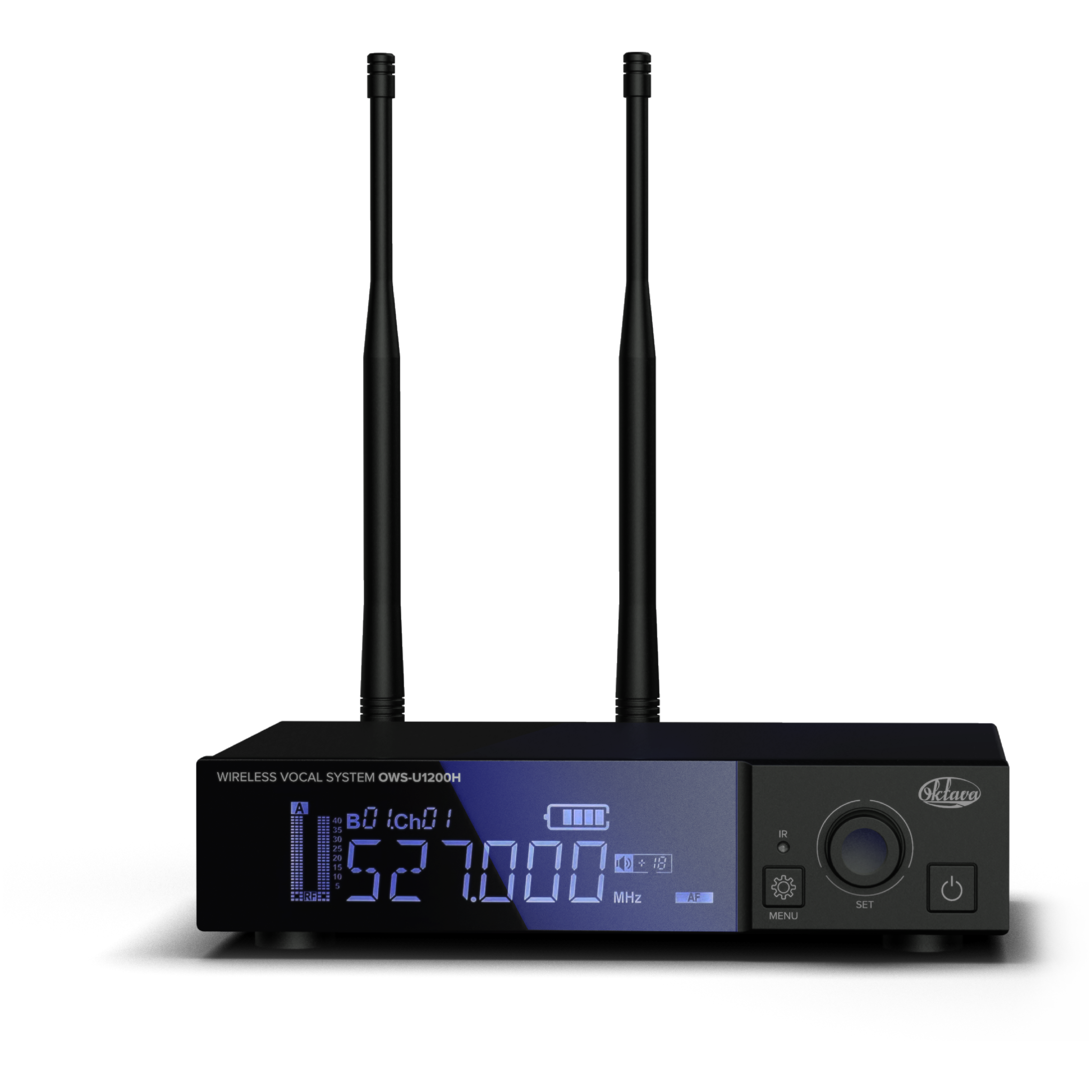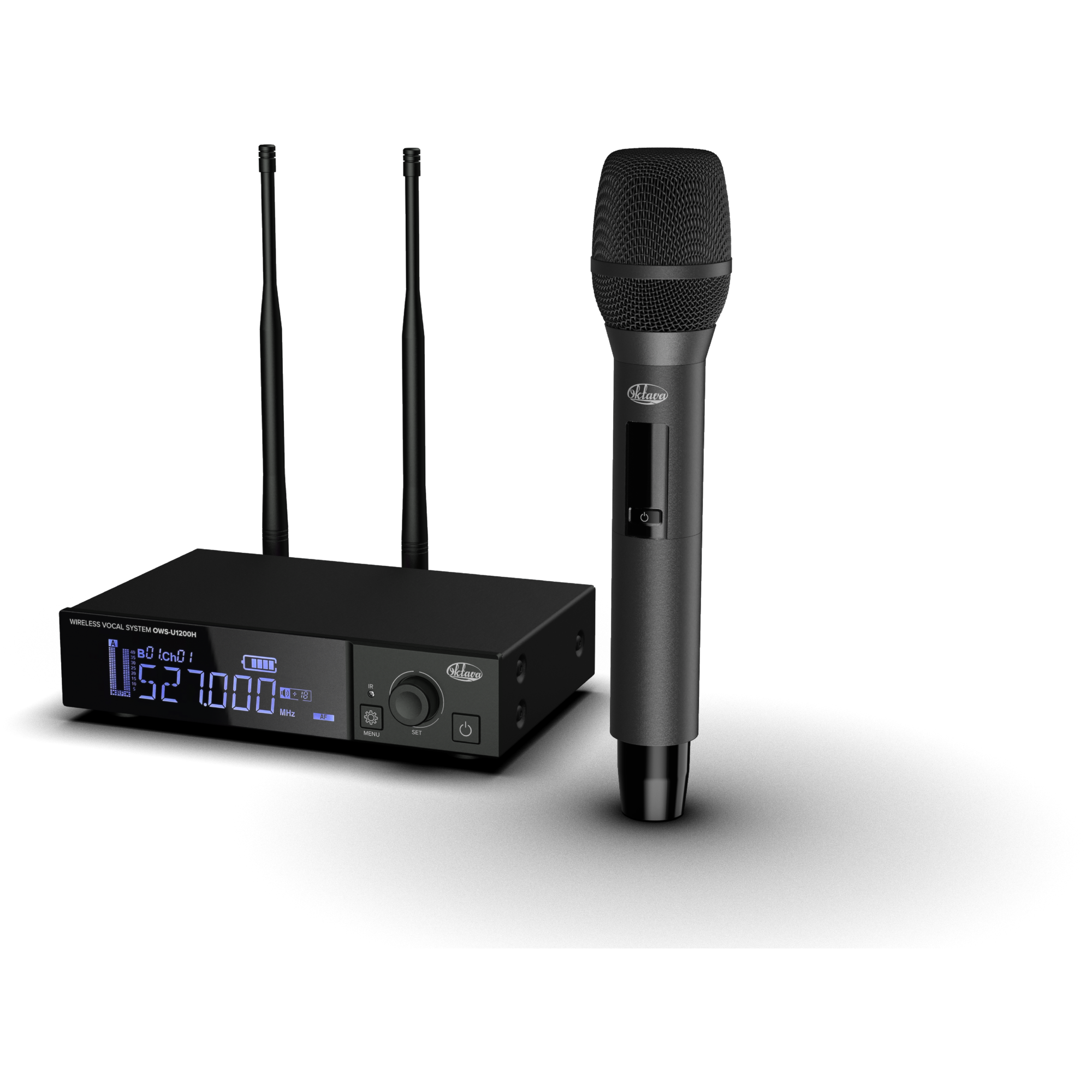 Октава OWS-U1200H Беспроводная вокальная радиосистема с одним ручным передатчиком в брендированном кейсе это система с аналоговым выходом звукового сигнала, оснащенная цифровой модуляцией типа /4 DQPSK, что дает ей следующие преимущества: