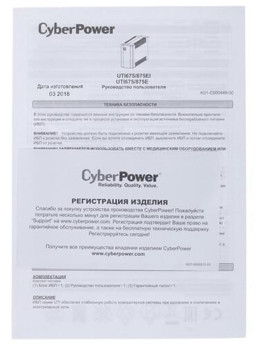 CyberPower UTI875EI поддерживает совместимость с генераторами, чтобы обеспечить непрерывность питания. На корпусе предусмотрена светодиодная индикация включения и состояния. Модель обеспечивает защиту от перегрузки, поддерживает фильтрацию помех. ИБП способен функционировать в течение 30 минут (60 Вт).
