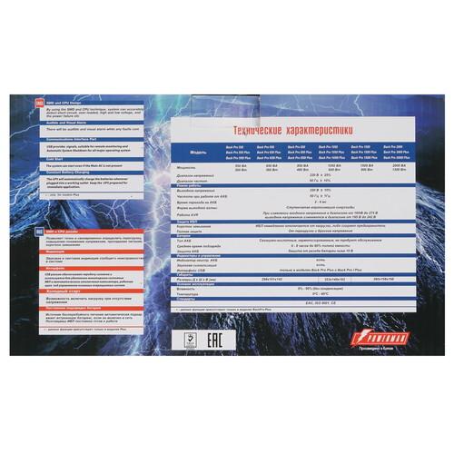 Powerman Back Pro 650 представлен в черном корпусе с форм-фактором Tower. С помощью LED-индикаторов ИБП оповещает об ошибках, наличии питания от сети или батареи. Есть поддержка замены аккумуляторов. Устройство с предохранителем оснащено одной свинцово-кислотной батареей с зарядкой в течение 8 ч.