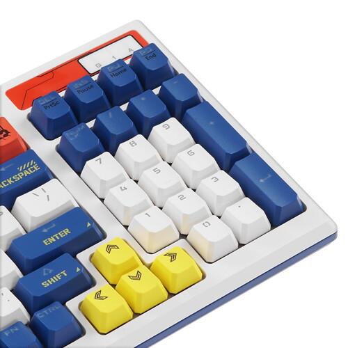 Клавиатура Bloody B950 [1975318] выполнена в бело-синем корпусе. Модель примечательна комбинированной расцветкой кейкапов. На основании расположены выдвижные ножки для регулировки угла наклона. Подключение к компьютеру выполняется по кабелю с интерфейсом USB.