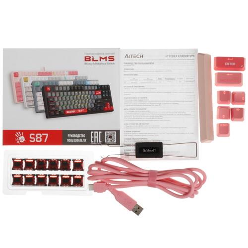 Клавиатура проводная A4Tech Bloody S87 Energy оснащена линейными переключателями Bloody BLMS Red Plus. Они отличаются плавным ходом и тихим нажатием. За мгновенный доступ к игровым действиям несут ответственность программируемые кнопки. Регулируя угол наклона, пользователи могут выбрать удобное положение модели.