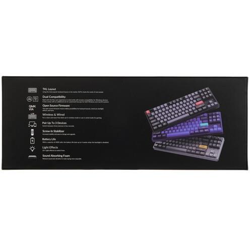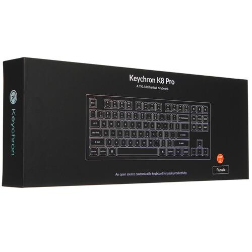 Клавиатура проводная+беспроводная Keychron K8 Pro [K8P-J3] с 87 кнопками оснащена тактильными переключателями, которые обеспечивают плавный и точный ввод. Корпус из пластика и металла имеет стильный дизайн, который подойдет для любого рабочего стола.