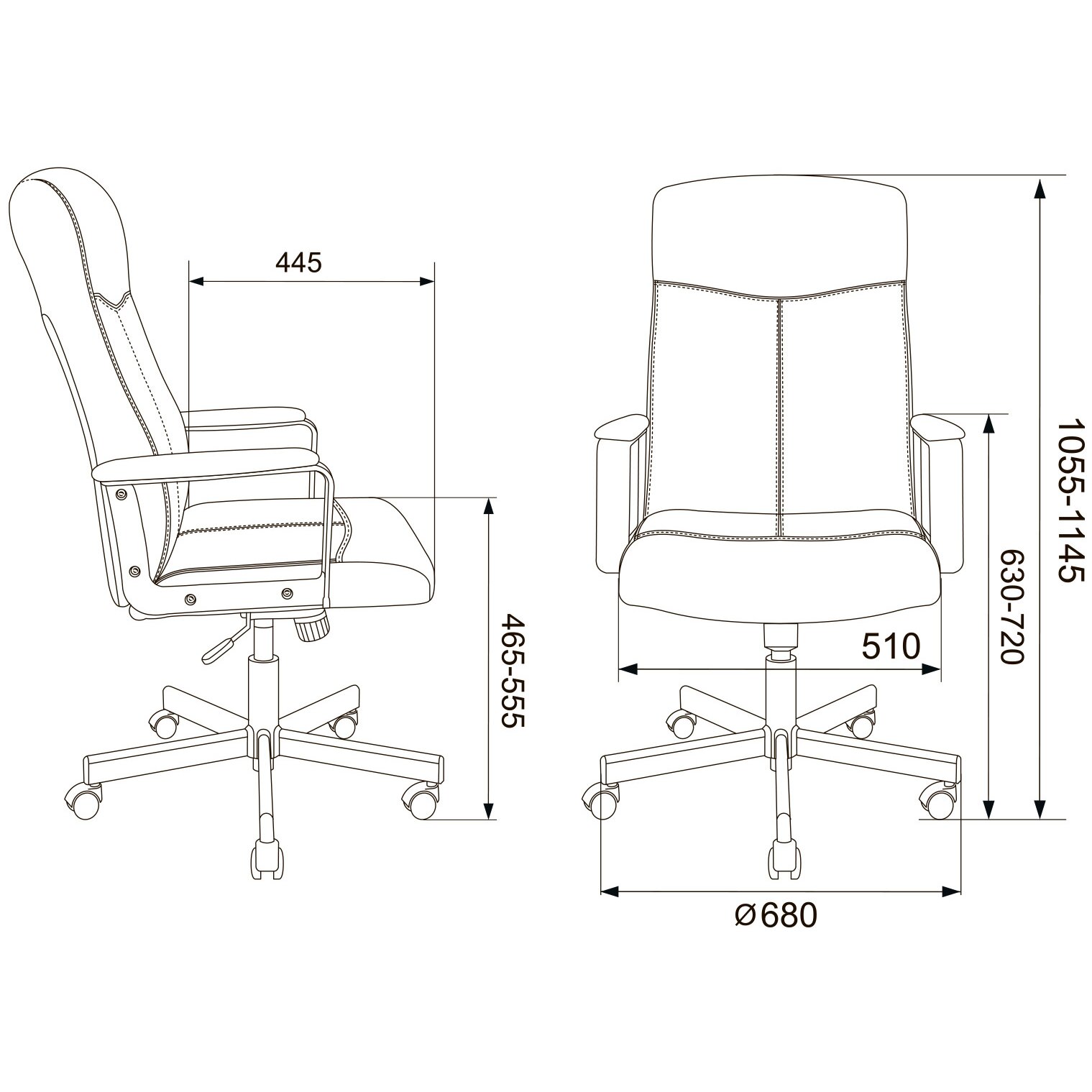 Высота с подлокотниками MIN