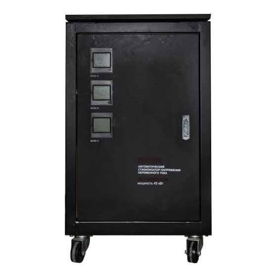 Трехфазный стабилизатор Ресанта АСН 45000/3 используется в офисах, мастерских или крупных коттеджах для выравнивания входного напряжения и защиты приборов от высоких скачков напряжения с суммарной мощностью до 45кВт. Выделяется высокой точностью выходного напряжения, которая составляет +/-2%. Панель управления содержит необходимые индикаторы для удобного контроля уровня напряжения. Все уязвимые элементы стабилизатора защищены ударопрочным корпусом.