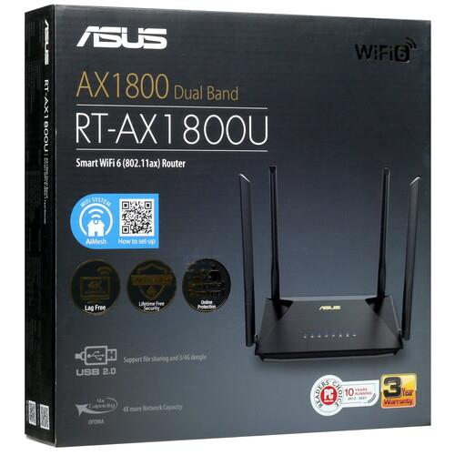 Wi-Fi роутер ASUS RT-AX1800U обеспечивает скорость передачи данных на частоте 2.4 ГГц до 574 Мбит/с. Соответствующий показатель для 5-гигагерцового диапазона – 1201 Мбит/с. Роутер поддерживает мобильное приложение ASUS Router и голосовой помощник Alexa. В устройстве реализованы основные функции безопасности – межсетевой экран, родительский контроль, демилитаризованная зона, гостевая сеть, NAT, VPN и фильтрация трафика. Роутер рассчитан на установку внутри помещений. В комплектацию модели входят адаптер питания и патч-корд.