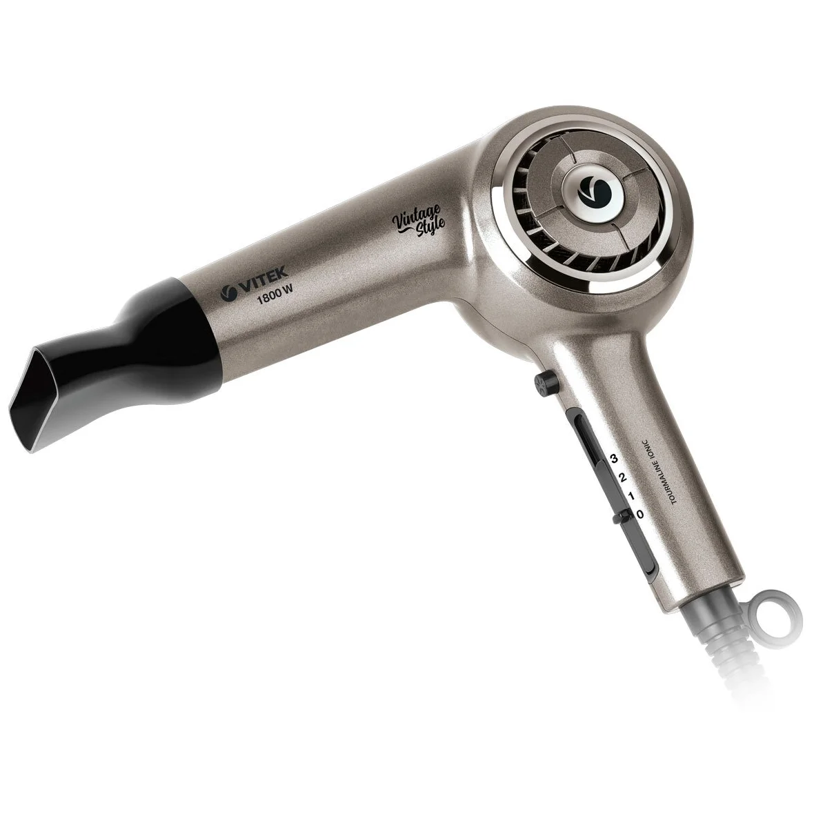 Фен VITEK VT-8230 отличается не только превосходной функциональностью, но и эксклюзивным ретро-дизайном, который непременно оценят настоящие эстеты. Этот прибор позволит высушить волосы и сделать укладку, сохраняя их красоту и здоровье. Вы можете выбрать один из трех температурных режимов и скоростей воздушного потока. Следует отметить инновационное покрытие фена Tourmaline Ionic, которое при нагревании образует отрицательные ионы, способствующие запечатыванию чешуек волос и снятию статического электричества.