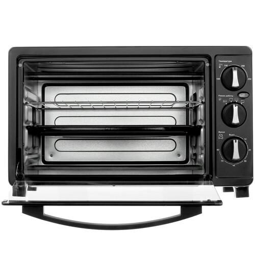 Электропечь BBK OE2343M обладает объемом 23 л и компактными размерами, поэтому поместится даже на небольшой кухне. Данная модель оснащена 3 традиционными режимами нагрева для разных блюд. Поворотные переключатели позволяют настраивать температуру запекания, режим и время, при окончании которого срабатывает звуковой сигнал.