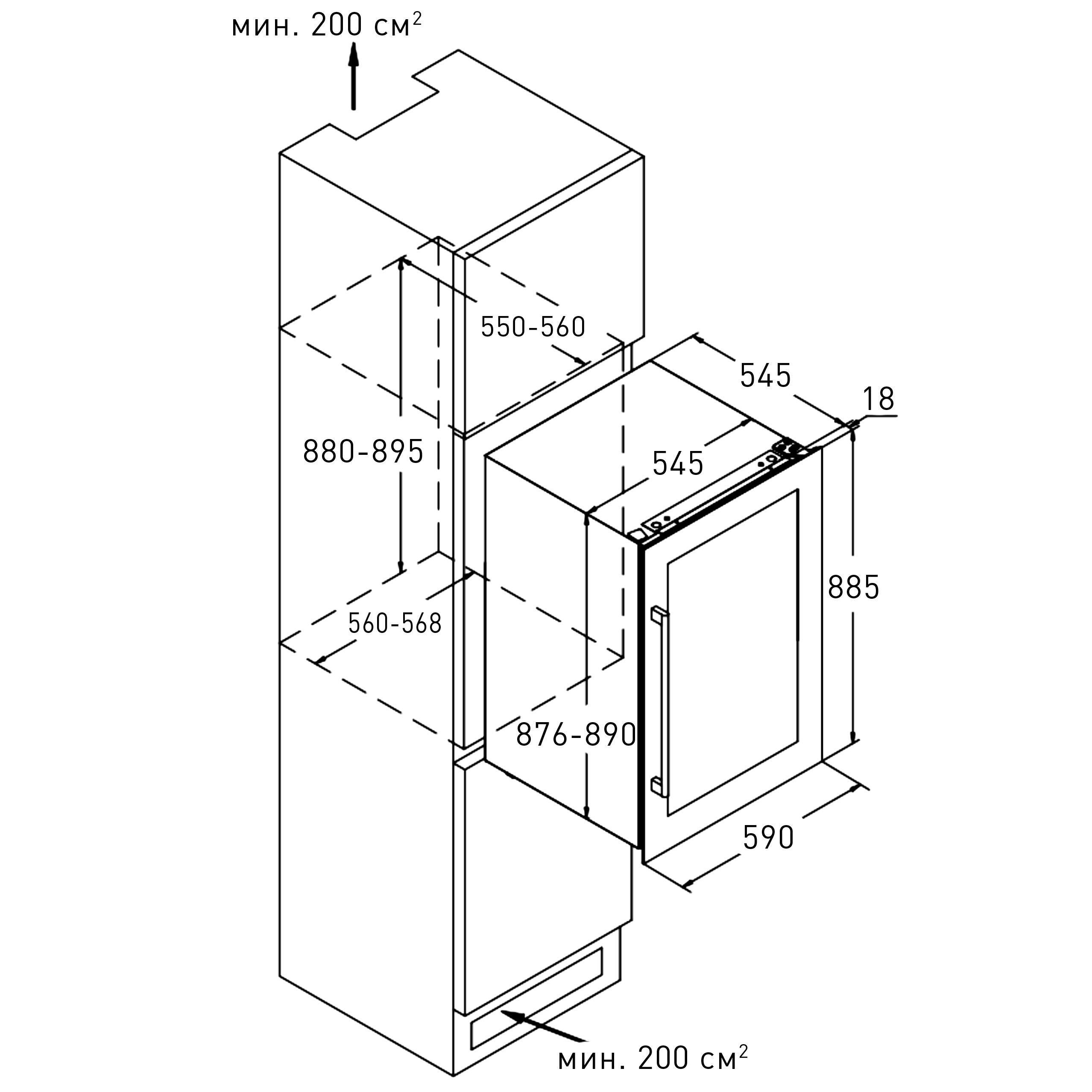 Размеры ниши для встраивания (ВхШхГ) (см)