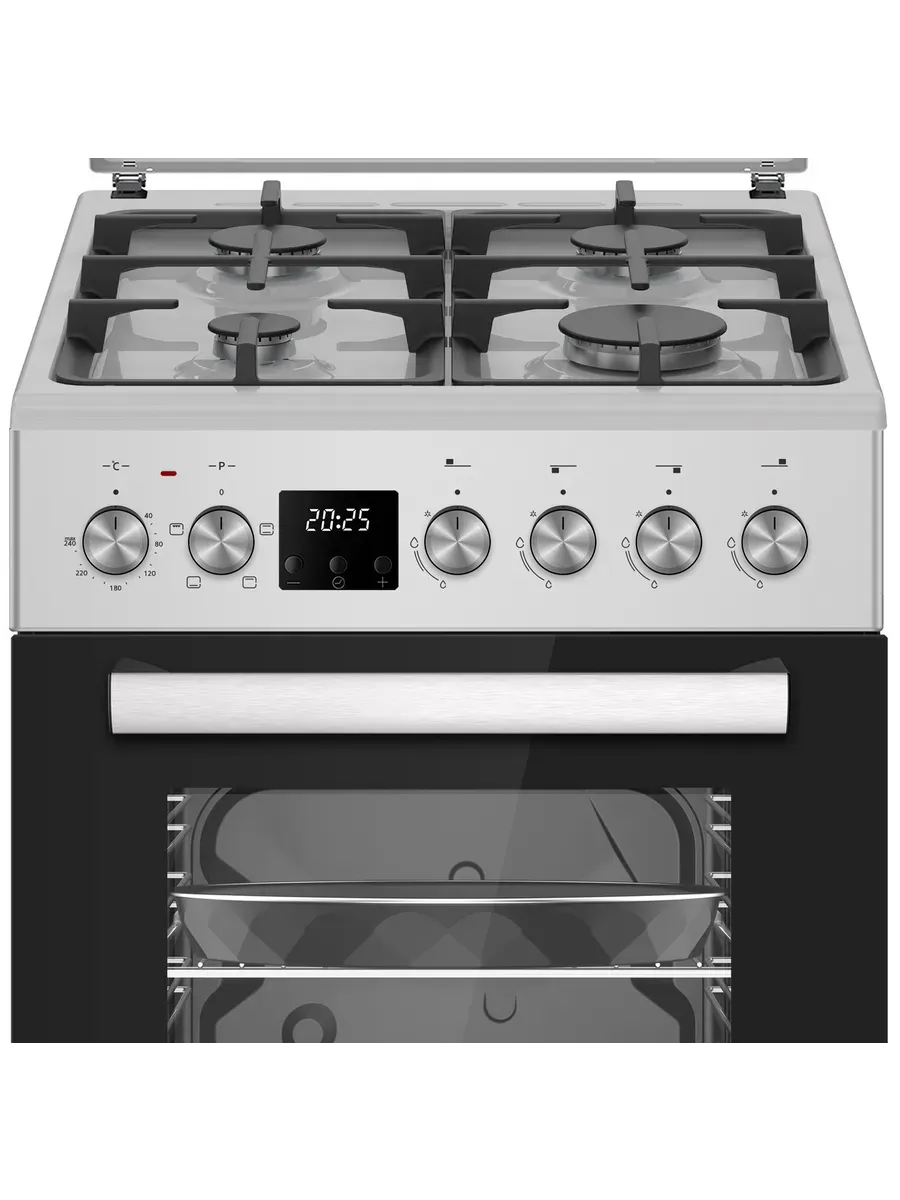 Плита сочетает газовые конфорки и электрическую духовку объемом 52 литра, обеспечивая универсальность в приготовлении блюд. Четыре режима духовки (верхний/нижний нагрев, их комбинация, гриль) и интуитивное механическое управление позволяют точно контролировать процесс.