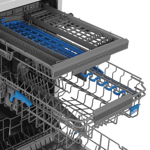 - Экономия воды и электроэнергии: Технология Dual Zone Wash позволяет использовать только верхний или нижний разбрызгиватель при половинной загрузке.
