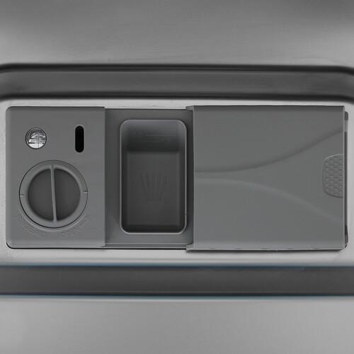 Благодаря использованию специальной **нержавеющей стали**, камера этой посудомоечной машины обладает превосходными шумопоглощающими свойствами. Вибрации эффективно гасятся. Уровень шума составляет всего **44 дБ**. Это тише обычной беседы.