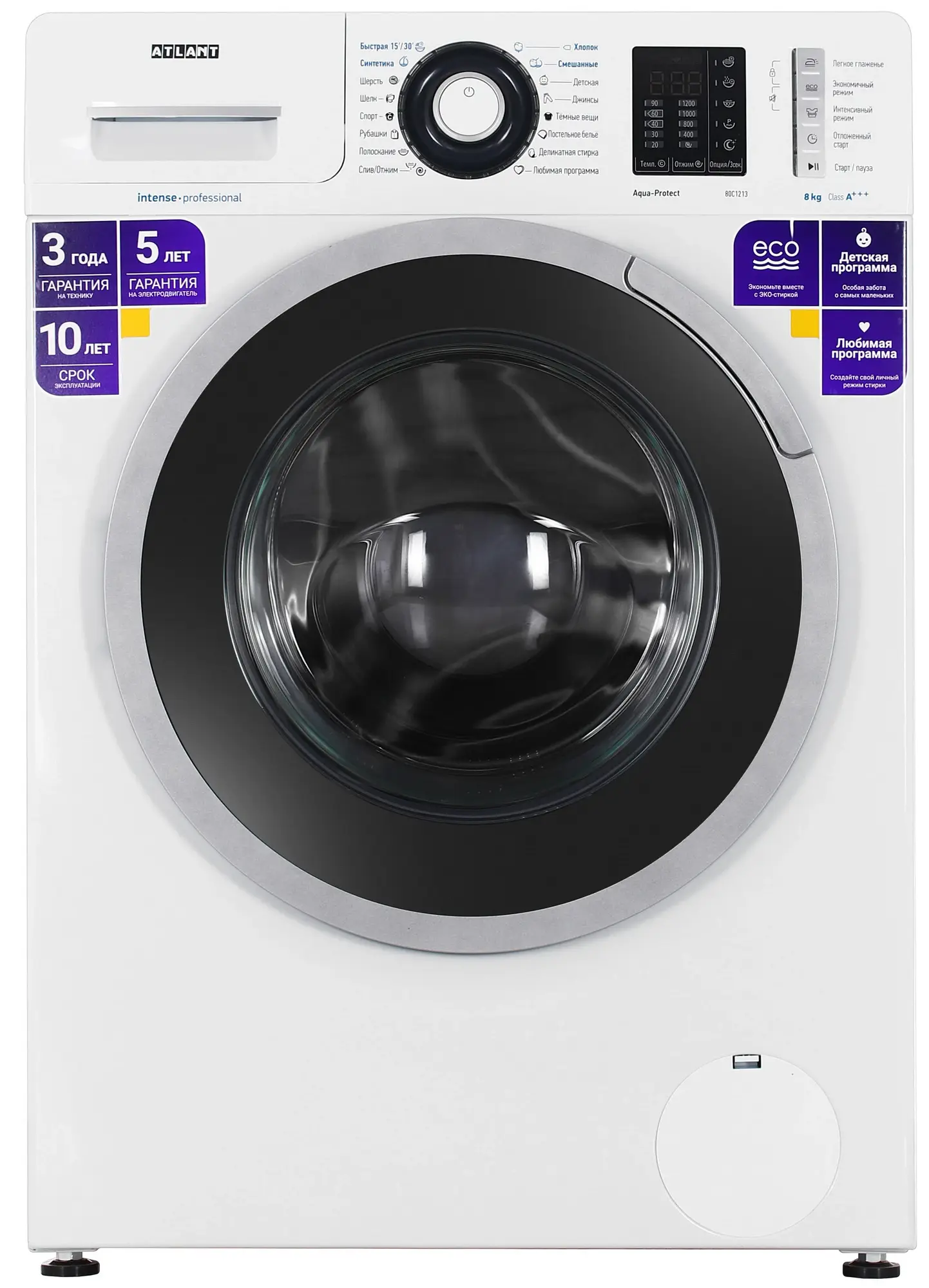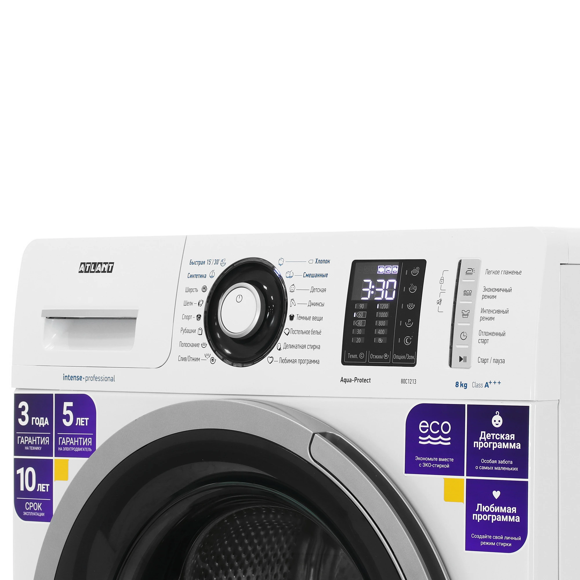 блокировка от случайного нажатия, выбор скорости отжима, выбор температуры, добавление воды во время стирки, дополнительное полоскание, замачивание, интенсивная стирка, легкая глажка, ночная стирка, отсрочка окончания, предварительная стирка, старт/пауза, экологичный