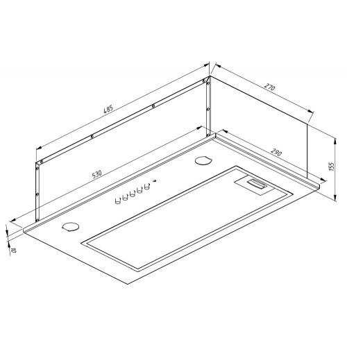 Габаритные размеры встраивания вытяжки – 485x145x270 мм. Габариты самой вытяжки – 530x155x290 мм. В комплект входит подробная инструкция по эксплуатации.