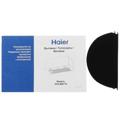 В конструкции воздуховода вытяжки полновстраиваемой Haier HVX-BI671X имеется антивозвратный клапан, который препятствует проникновению в квартиру насекомых и запахов из вентиляции. Также вытяжка способна хорошо справляться с очищением воздуха в режиме циркуляции. У нее предусмотрено 3 скоростных режима, для переключения которых используются кнопки. Чтобы обеспечить комфортную подсветку варочной поверхности, вытяжка оснащена 2 светодиодными лампами, расположенными на нижней панели.