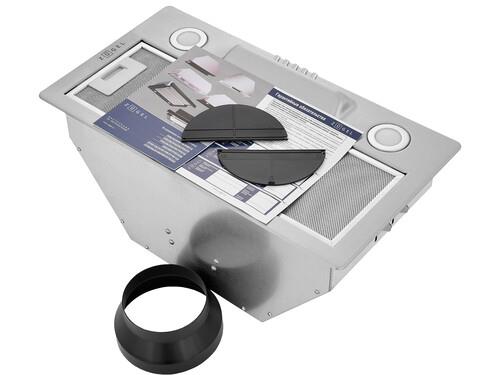 Мощный мотор с лёгкостью очистит воздух в помещении до 32 м². Расположенная под наклоном панель управления исключает дискомфорт в использовании. Классический европейский размер позволит встроить прибор в стандартный шкаф шириной 60 см. Две мощные светодиодные лампы по 2 Вт позволят полноценно осветить рабочую поверхность. Переходник в комплекте позволит подключить воздуховод обоих размеров. Прибор может работать в режимах отвода и рециркуляции, благодаря дополнительной установке угольного фильтра ZKF4.