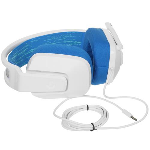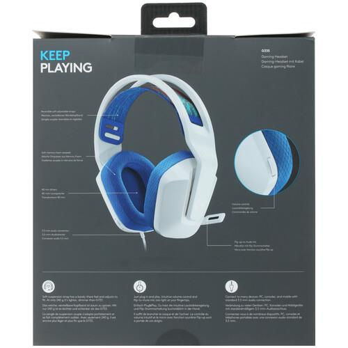 Кабель, используемый для подключения гарнитуры Logitech G335, имеет значительную (2 м) длину. В комплектацию модели входит переходник 2х jack 3.5 мм - jack 3.5 мм. Гарнитура легкая: ее масса равна лишь 240 г. Дизайн устройства оформлен с помощью эффектного сочетания белого и синего цветов.