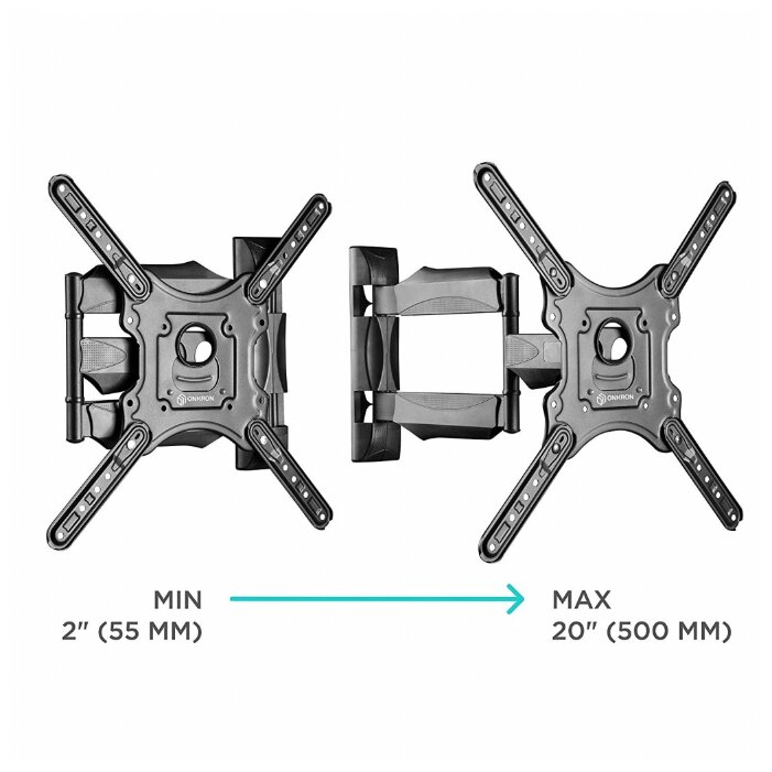 Дополнительная информация: расстояние от стены: 5.5~50 см; встроенный в корпус кабель-канал; угол наклона: от -5° до +8°; угол поворота: до 180°