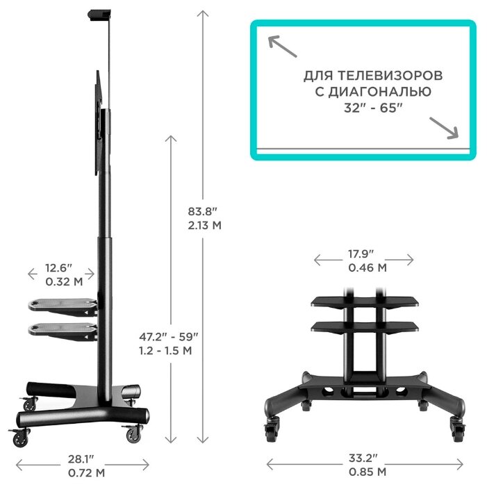 Максимальная диагональ ТВ: 32-65 "