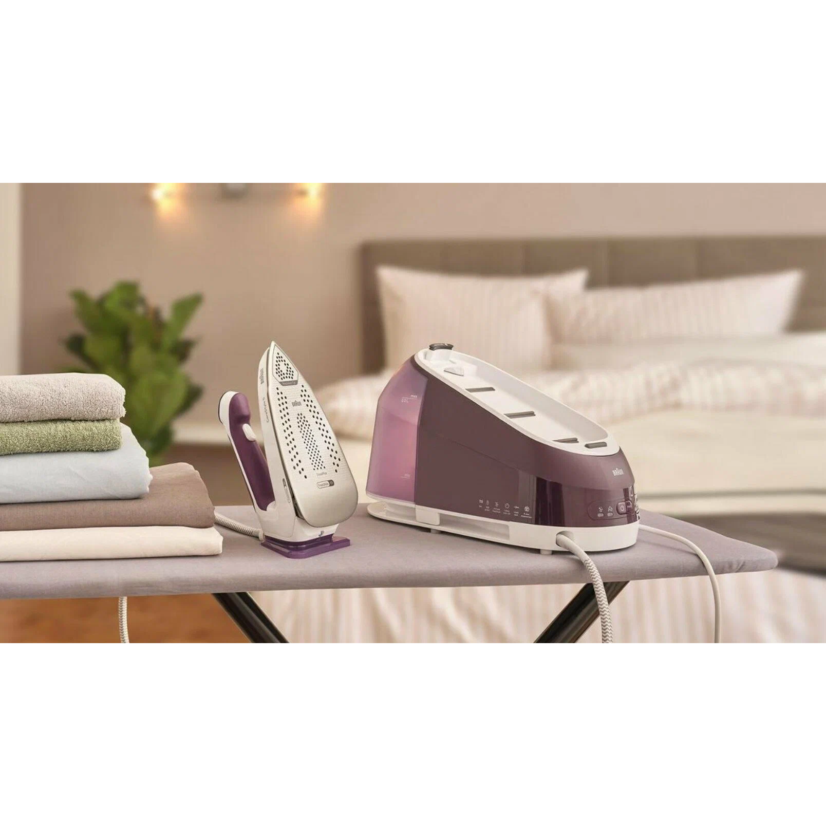 Экономьте время на то, что действительно важно Запатентованная анодированная подошва Eloxal 3D Plus в два раза прочнее стали для идеального скольжения Два предустановленных интеллектуальных режима Гладьте до 2 раз быстрее благодаря увеличенной подаче пара* * по сравнению с обычным утюгом Есо-режим сохраняет до 1 кВтч и до 1,З л воды в час по сравнению с режимом Turbo Забота об экологии Возможность гладить в любом направлении на 360º Быстрая очистка от накипи Безопасное глажение Бережное глажение Давление подачи пара 7,5 бар Максимальное количество пара 500 г/мин Среднее количество подачи пара 145 г/мин Защита ткани при любых настройках Автоматическое отключение в состоянии покоя В сравнении с предыдущими моделями* *на основании лабораторных тестов Вес парогенератора 5,8 кг Объем резервуара для воды 2 л Быстрая фиксация Мощность 2400 Вт