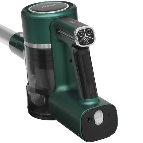 Пылесос Haier HVC400B с раскладной конструкцией может использоваться в вертикальном и ручном режиме в зависимости от задач сухой уборки. Сила всасывания на уровне 160 Вт обеспечивает очистку поверхностей от пыли, крошек, волос, шерсти животных. Для сбора мусора предусмотрен съемный пластиковый контейнер вместимостью 0.8 л.