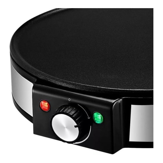 Блинницу не нужно устанавливать на плиту, поэтому можно готовить на любой удобной ровной поверхности, устойчивой к высоким температурам. С помощью палочки для распределения теста блин получается идеально ровной.