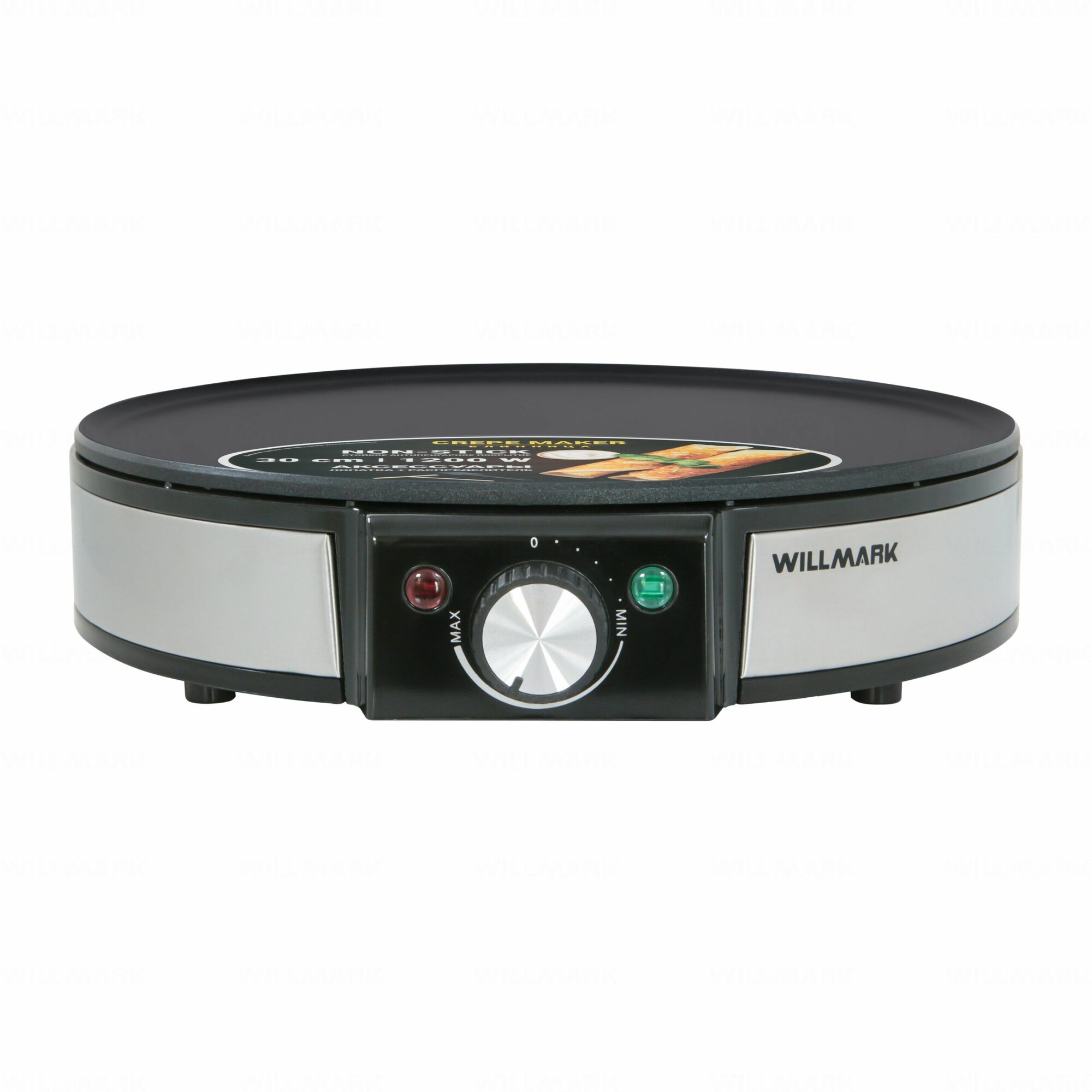Блинница WILLMARK WCM-1230 – отличный помощник на кухне, имеет элегантный внешний вид и проста в использовании. Корпус модели выполнен из высокопрочного пластика, вставки из нержавеющей стали. Антипригарное покрытие. В комплект входит кулинарная лопатка и Т-образный распределитель для теста.Блинница оснащена термостатом, поэтому вы можете в любой момент отрегулировать желаемую температуру. Устройство имеет индикатор нагрева, который подскажет, когда рабочая поверхность достигает выбранной температуры.