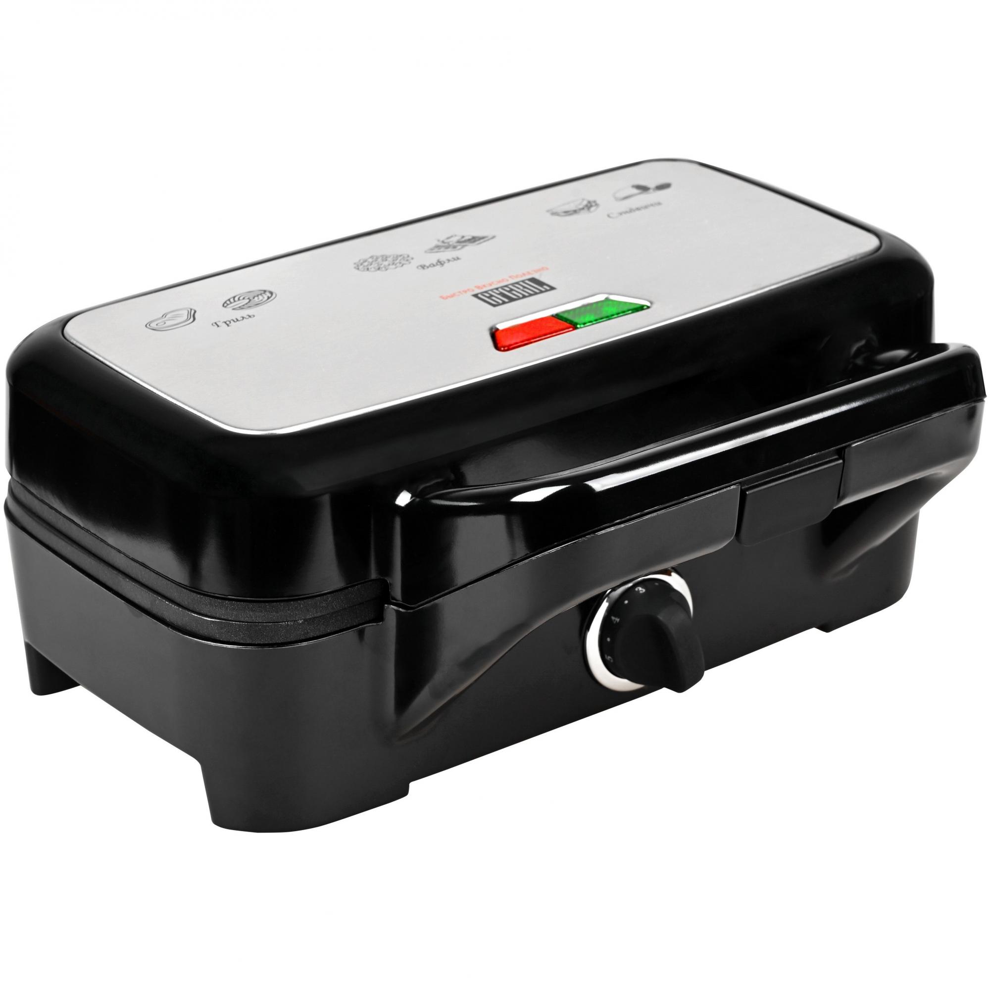 размер панелей 28 х 14.5 см; напряжение питания: 220-240В/50-60Гц; комплектация: 2 панели для гриля, 2 панели для вафель, 2 панели для сэндвичей