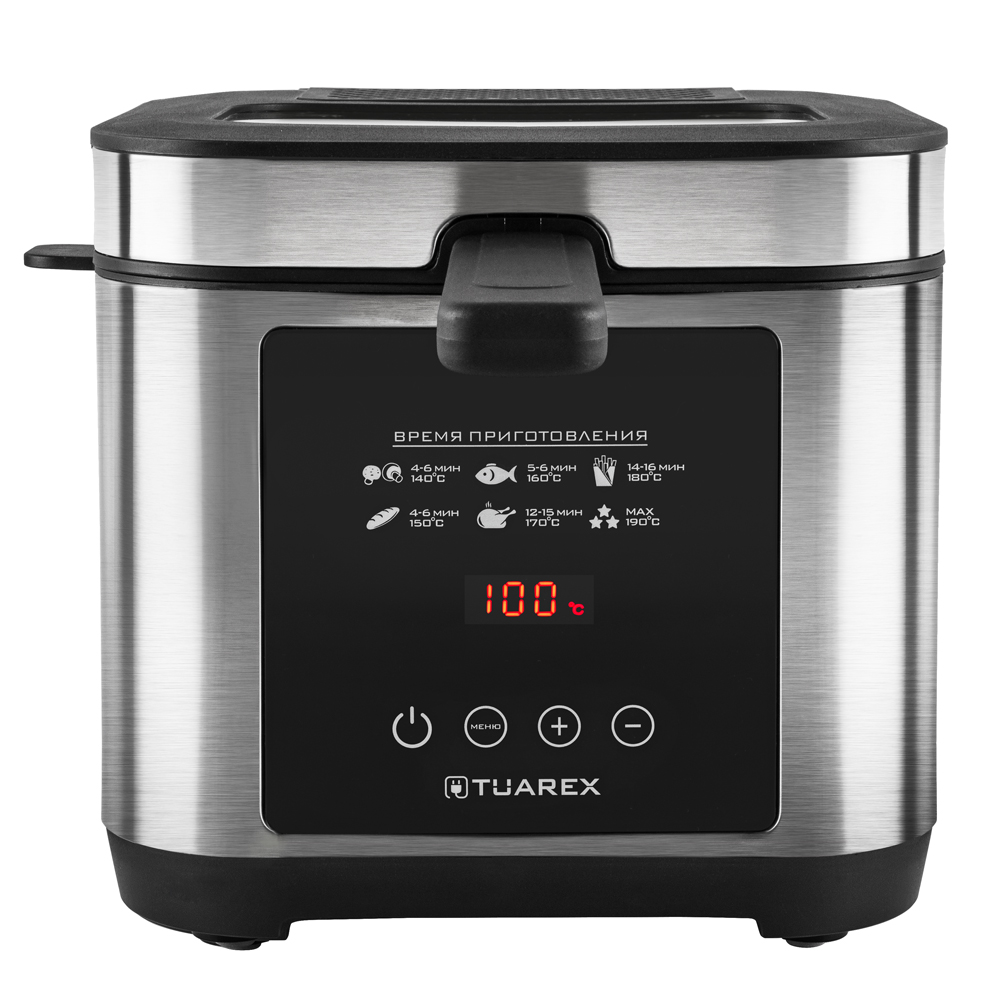 Регулировка температуры приготовления, Сенсорное управление, LED дисплей, Таймер до 2 часов, Корзина для фритюра с ручкой, Антипригарное покрытие чаши, Защита от перегрева, Съемная крышка, Прозрачное окошко на крышке, Индикатор работы
