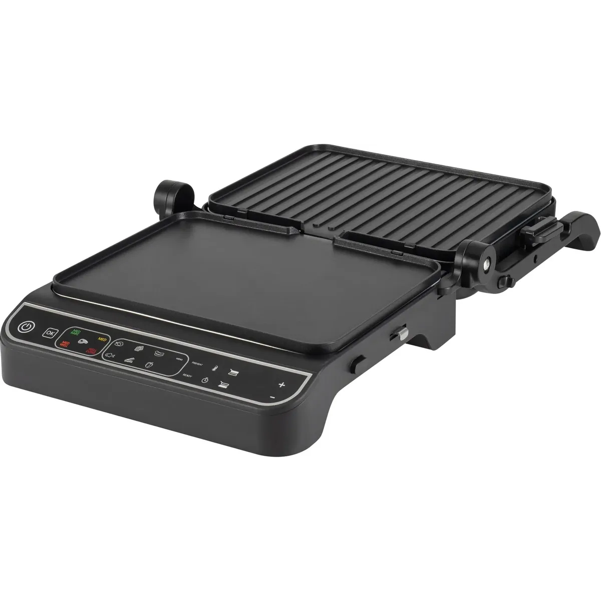 Термощуп обеспечивает автоматический контроль температуры внутри стейка, тем самым контролирует степень прожарки. 10 автоматических программ для приготовления, а так же ручной режим, для оптимальных настроек для каждого типа продуктов. Открытие на 180°, плоская панель и раздельная регулировка температуры панелей, позволяет использовать гриль как плиту.