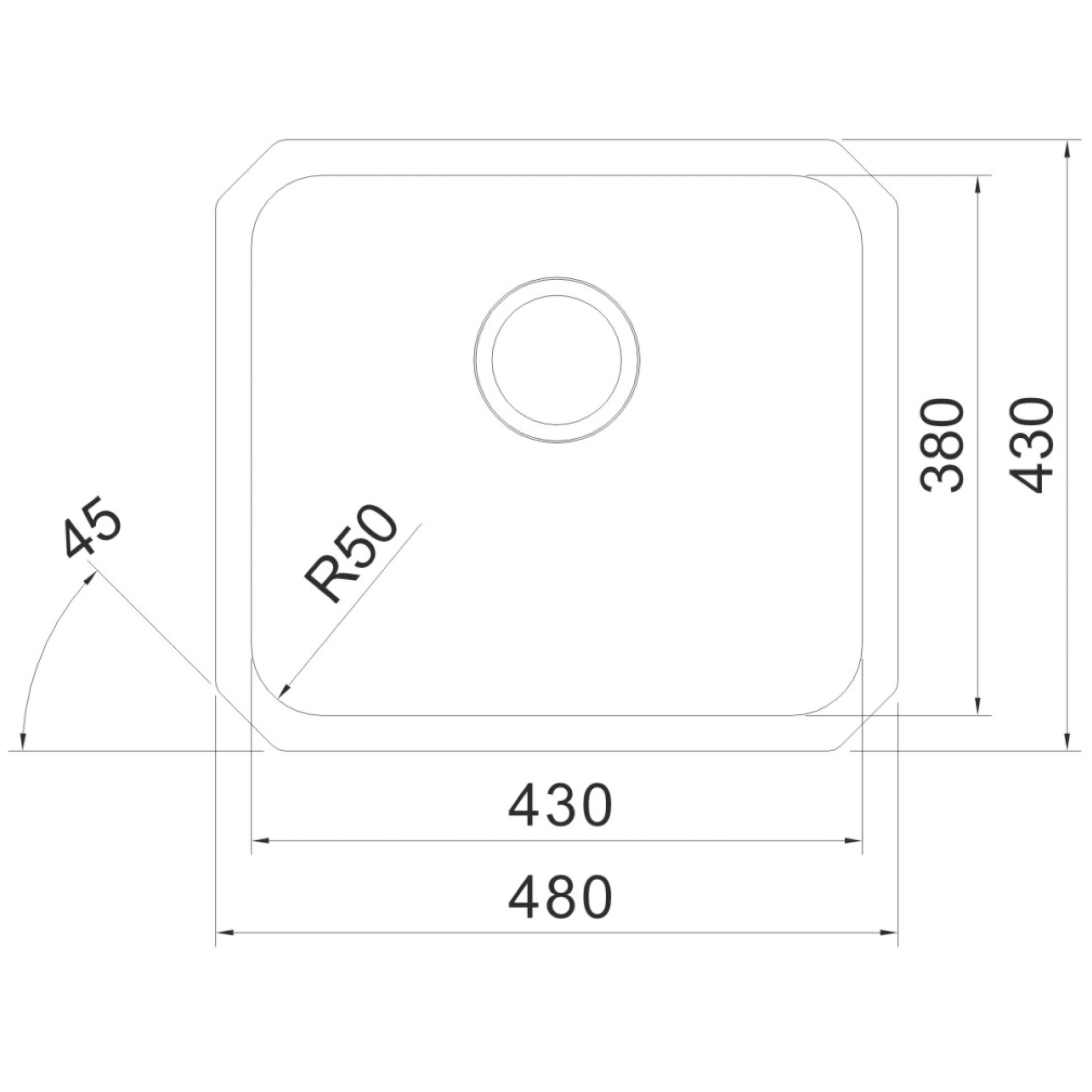 Вырез под мойку, мм