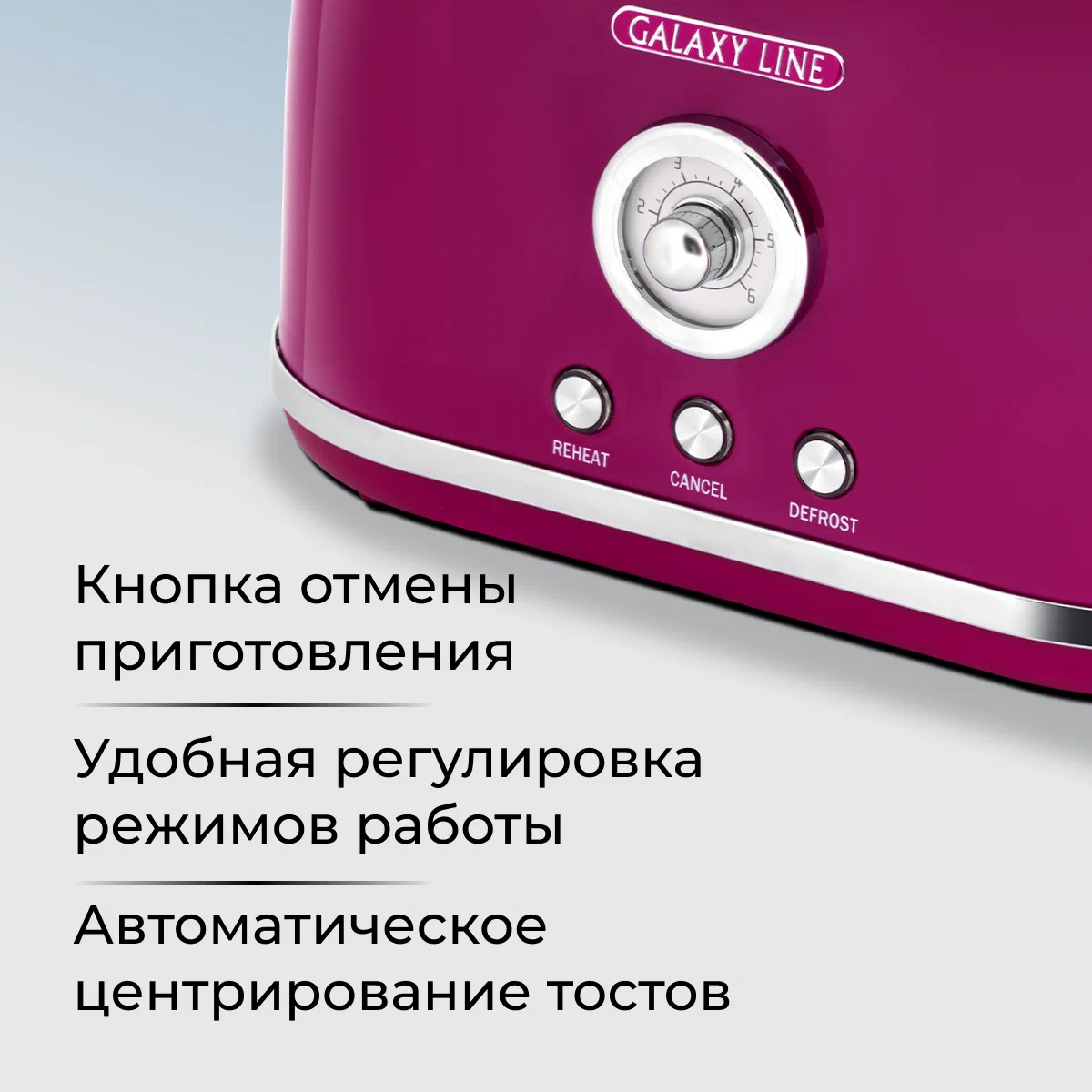 автоматическое центрирование тостов, кнопка отмены, регулировка степени обжаривания
