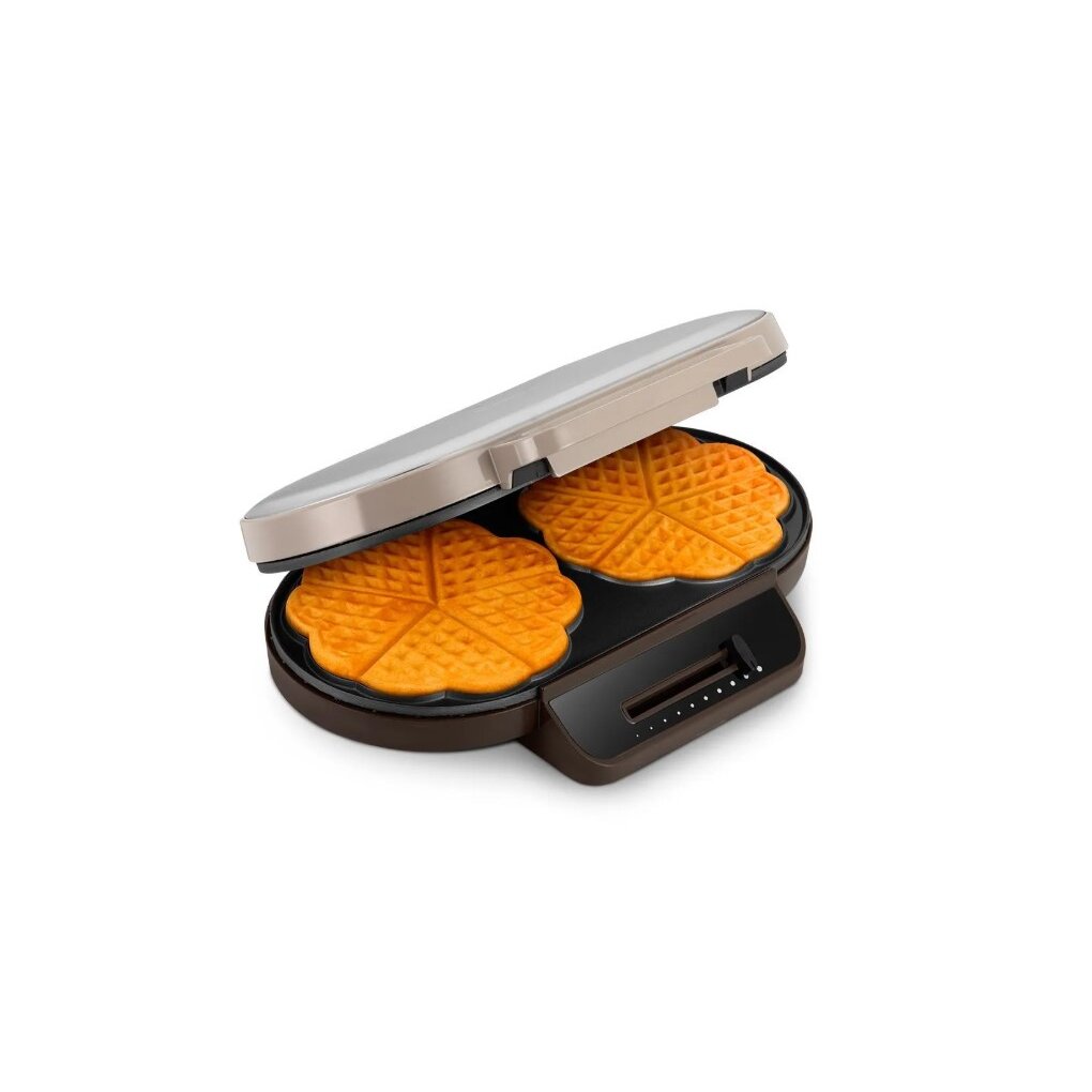С помощью электрической вафельницы КТ-3637 вы сможете печь вафли в форме цветка, которые при желании можно разделить на маленькие сердечки. Вафельница рассчитана на приготовление 2 вафель в форме цветка или 10 маленьких вафель в форме сердечек.