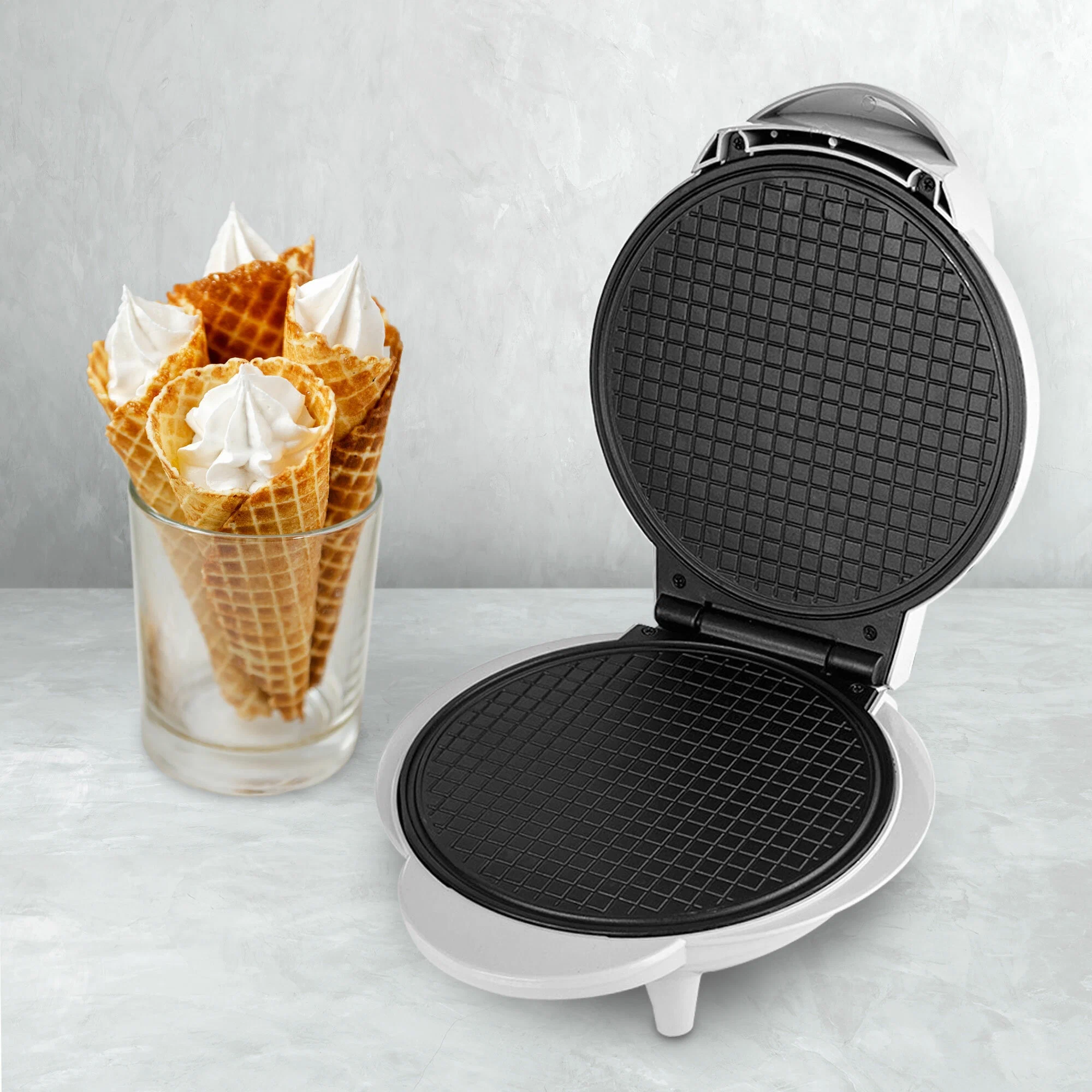 Общие характеристикиБрендMaxwellЦвет товарабелыйТипвафельницаМощность1000 ВтМатериал корпусапластикДополнительные характеристикиОсобенностииндикатор работы, конус для рожков в комплекте, отсек для хранения шнураДополнительные функциирегулировка температурыКоличество порций1КомплектацияВид панеливафлиВид панели для вафелькруглые